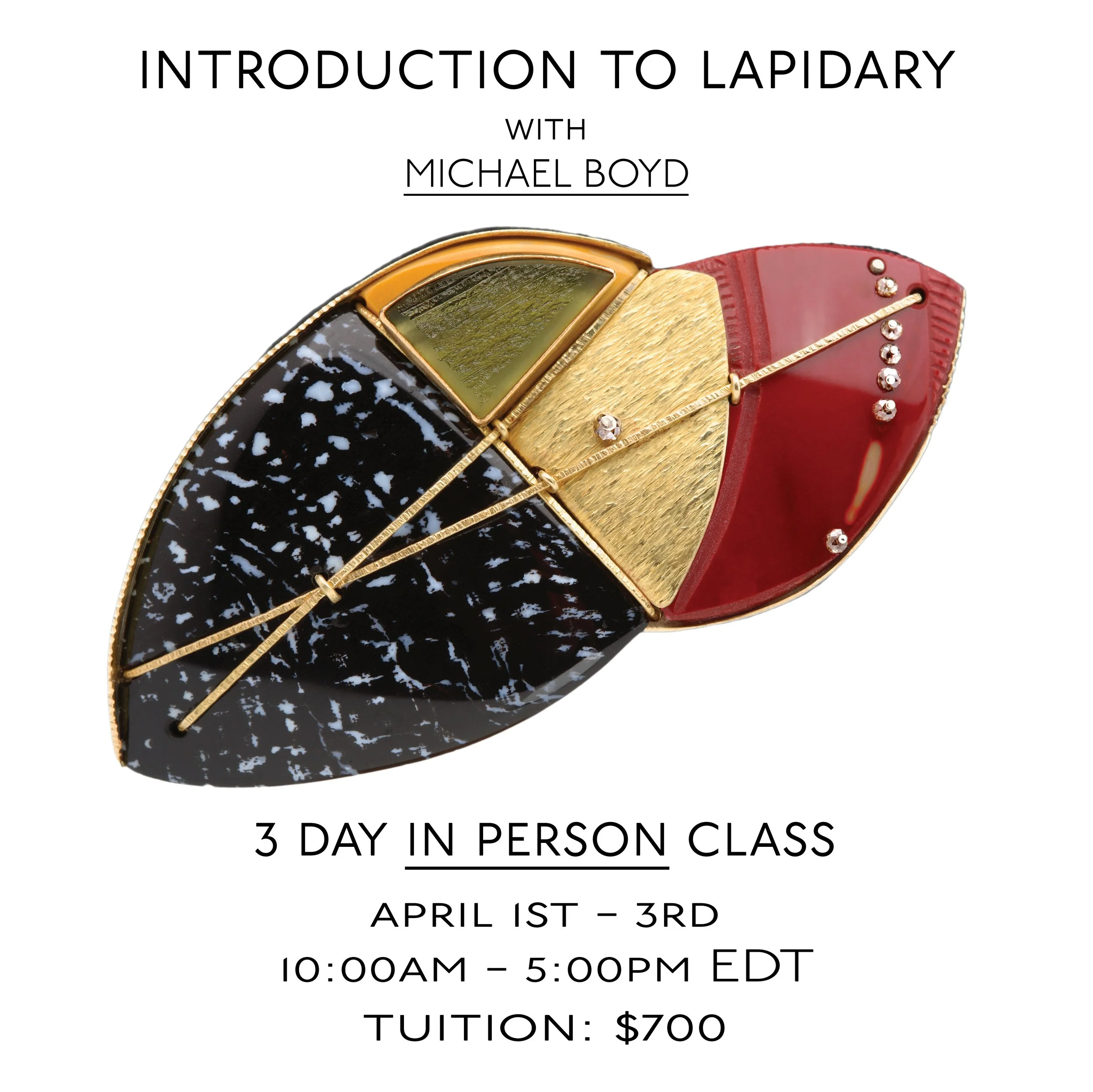 Are you ready to take your lapidary skills to the next level? Then join master lapidarist and internationally renowned metalsmith Michael Boyd for this 5 day advanced workshop!